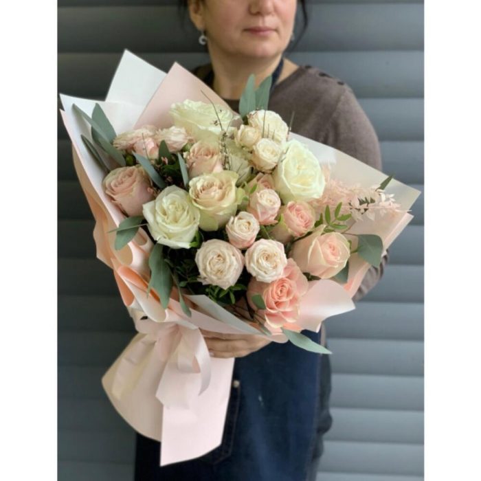 Букет «Французский десерт» (премиальная роза pink ohara)