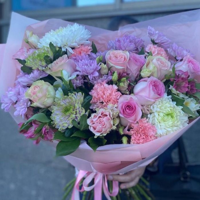 Категорий: Альстромерии, Гвоздики, Кустовые розы, Лизиантусы, Розы, Хризантемы