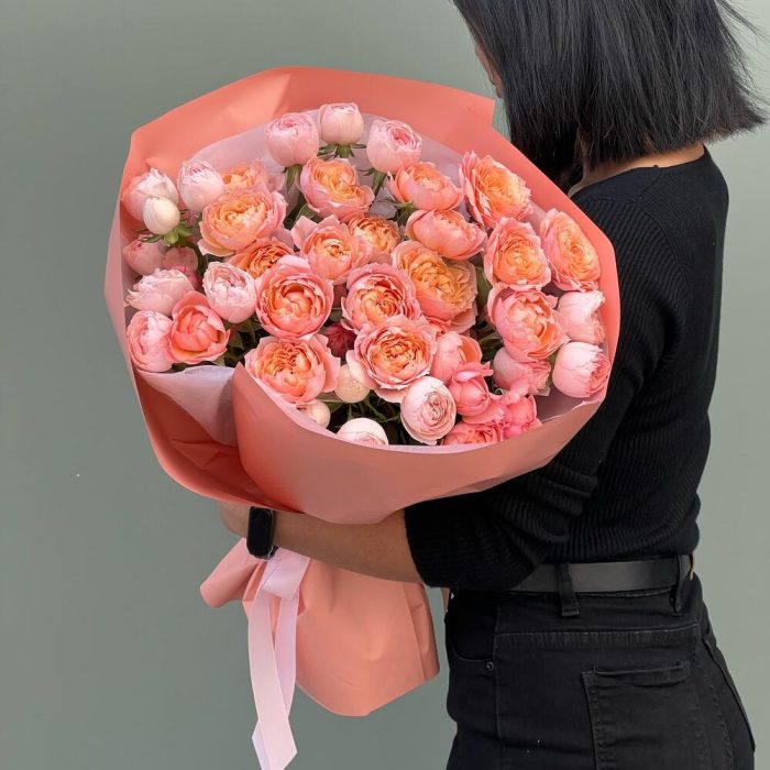 Гвоздики, Кустовые розы, Лизиантусы, Пионовидные розы, Розы