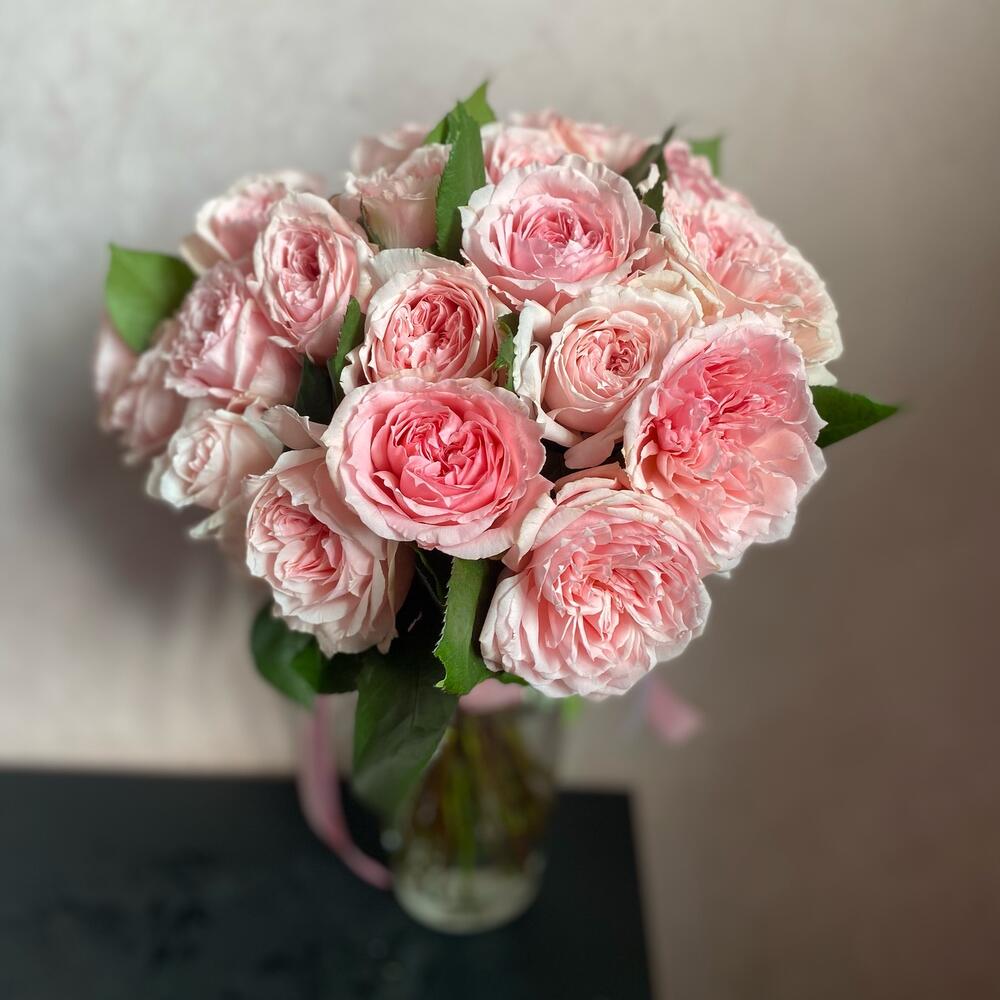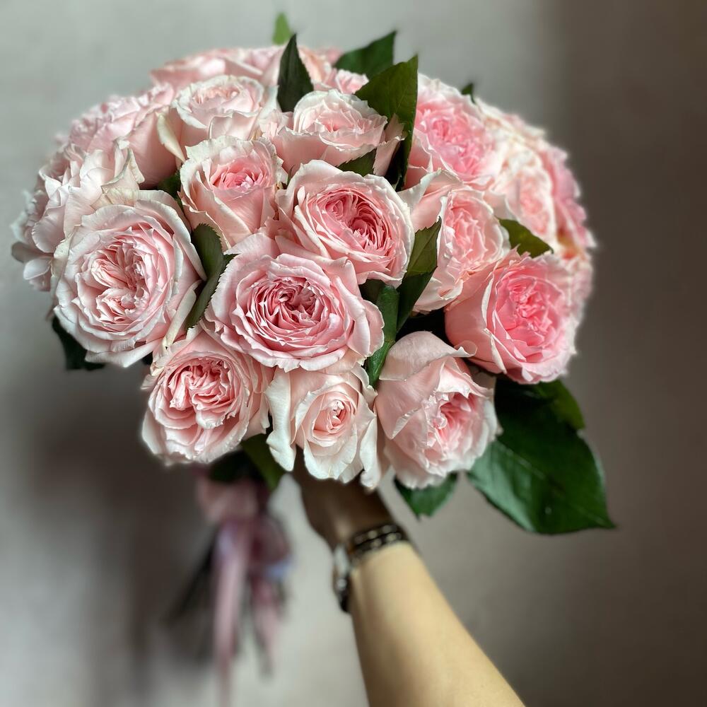 Роза пионовидная – 23 шт.Лента атласная – 3 шт.