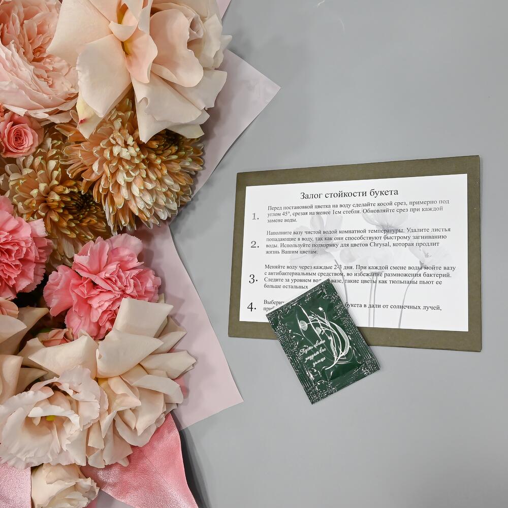 - Сроки возврата: Претензии по качеству букета принимаются в течение 24 часов с момента его получения.