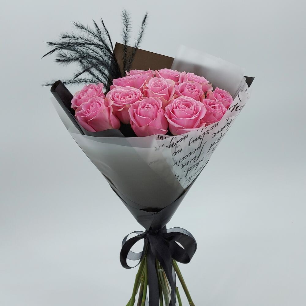 Роза Эквадор – 13 шт.Упаковка дизайнерская – 1 шт.ковыль крашеный – 1 шт.