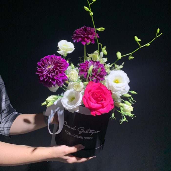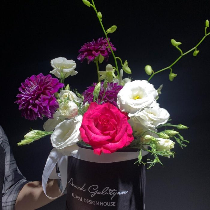 МИ МИ премиум мини-композиция из розы Джульетта в шляпной коробке