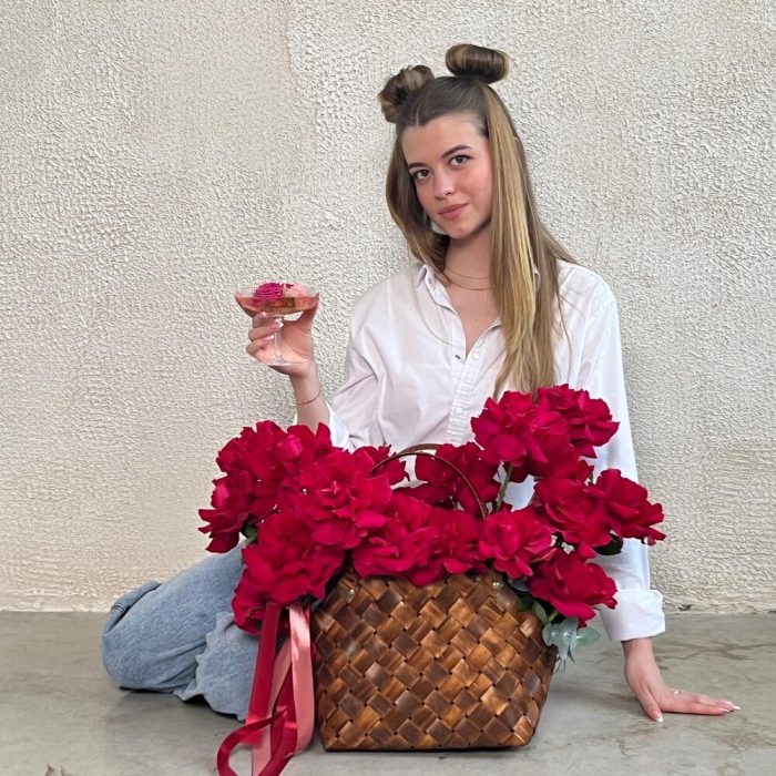 роза французская готча – 25 шт.Оазис – 1 шт.плетеная сумка – 1 шт.