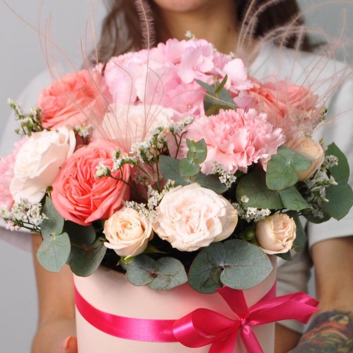“В твоих глазах”: нежная шляпная коробка с французскими розами
