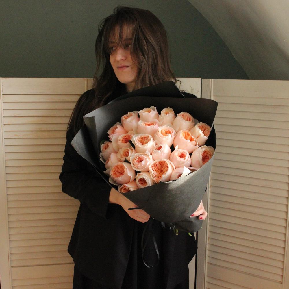 Роза пионовидная – 23 шт.Бумага – 3 шт.Лента – 2 шт.