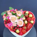 “Сладкое сердце ” – цветочная композиция с сладостями в коробке “Сердце”