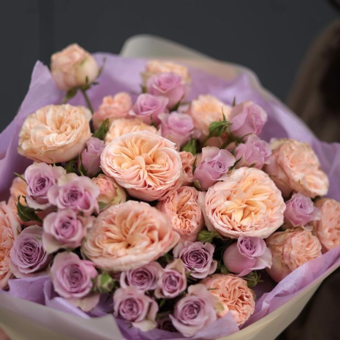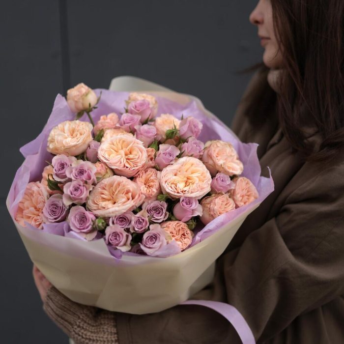 Авторский букет с пионом и пионовидынми розами Пинк охара