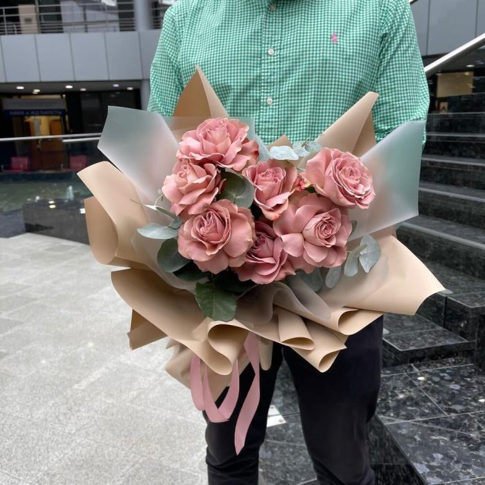 Роза Капучино – 7 шт.Упаковка дизайнерская – 3 шт.