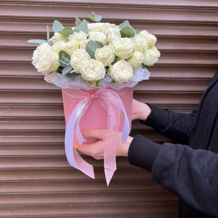 Пионвидные розы в шляпной коробке