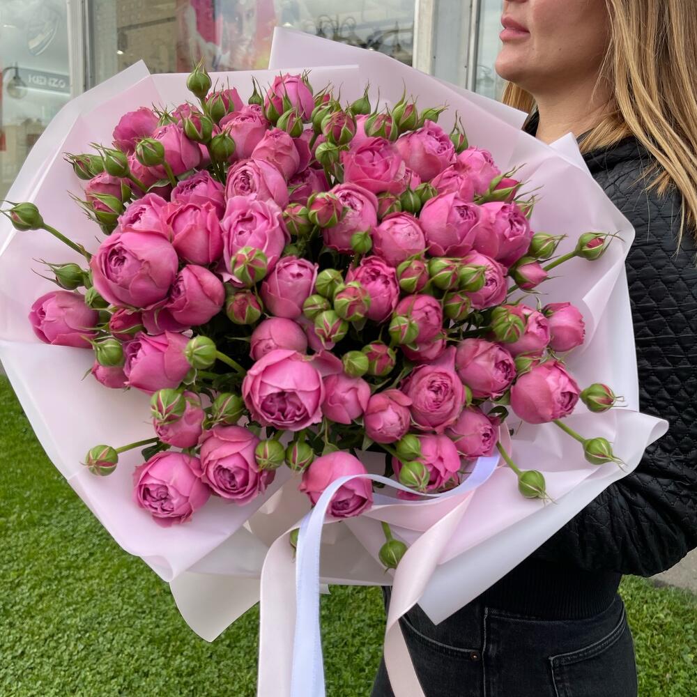 Шикарные и яркие пионовидные кустовые розы от лучших поставщиков из Эквадора! Крупные бутоны и совсем еще малышки, которые будут раскрываться один за другим в вашей вазе! На 1 веточке 5-7 крупных бутонов! Порадуйте своих родных и близких, а мы вам поможем с выбором)Рекомендации по уходу за букетом:- Меняйте воду в вазе ежедневно- Подрезайте цветы под углом 45 градусов (достаточно убрать 1 см.)- не ставить цветы на прямые солнечные лучи- Рекомендуем не ставить цветы рядом с фруктами ( в процессе созревания фрукты выделяют этилен, это плохо влияет на стойкость цветов)- Самое главное правильно не жалеть воды в вазе, все цветы очень любят воду)