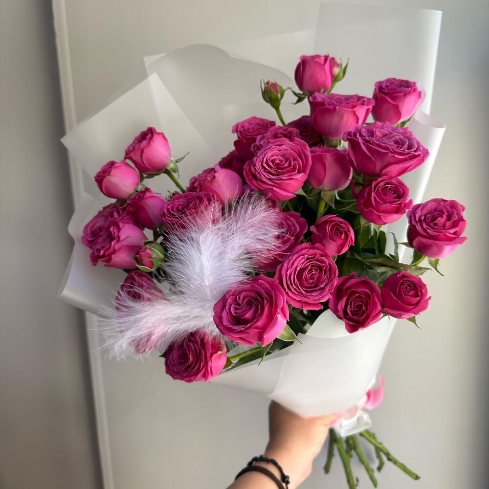 Стильный букет из пионовидной кустовой розы малинового оттенка ✨
