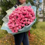 Шикарный букет из кустовой пион розы. Это прекрасный ярко розовый цветок, с прекрасным раскрытием. Розы после раскрытия напоминают пион, по этому и получили название пионовидные розы. Если доставка вам нужна срочно, то напишите нашим менеджерам и мы отправим букет максимально быстро .