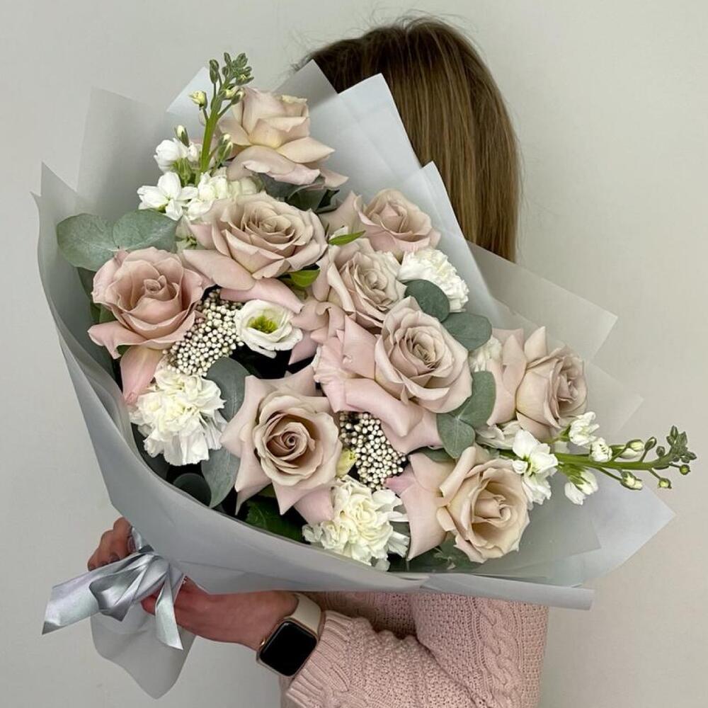 Кустовые розы, Лизиантусы, Розы, Сухоцвет