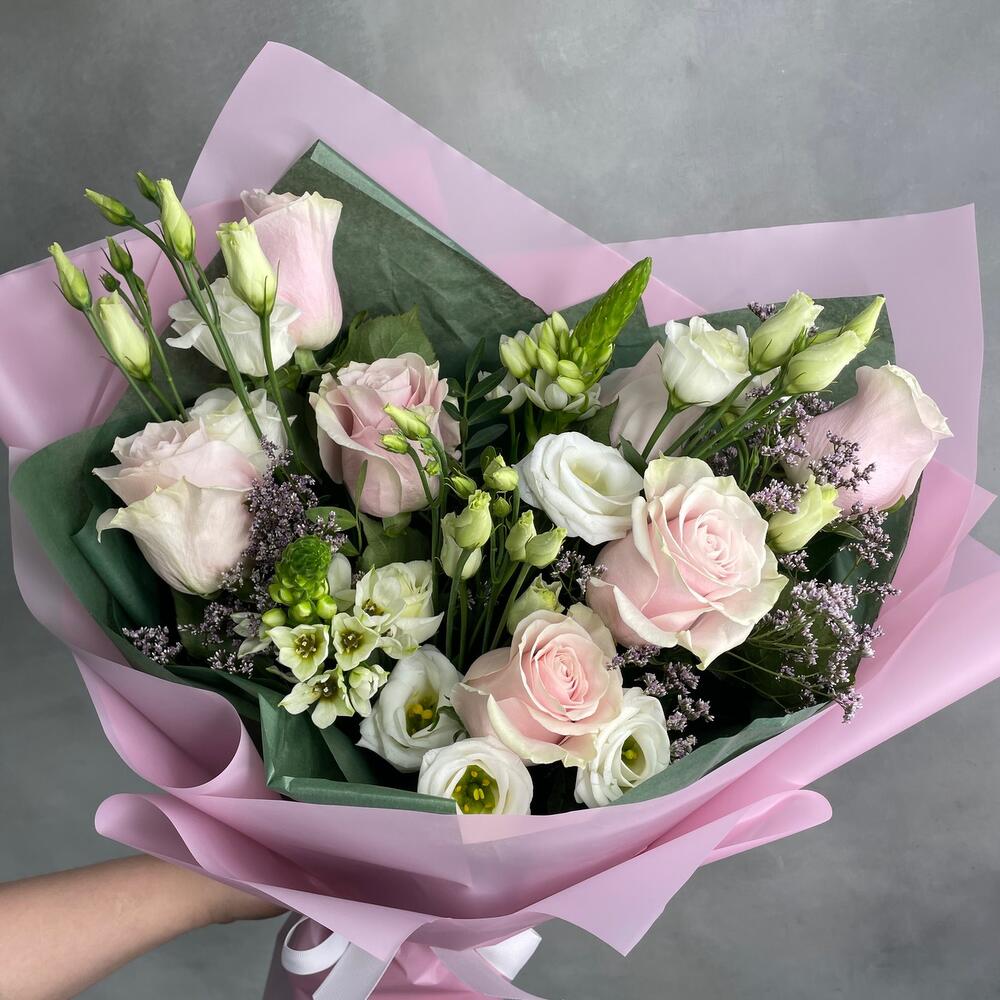 Гвоздики, Лизиантусы, Розы