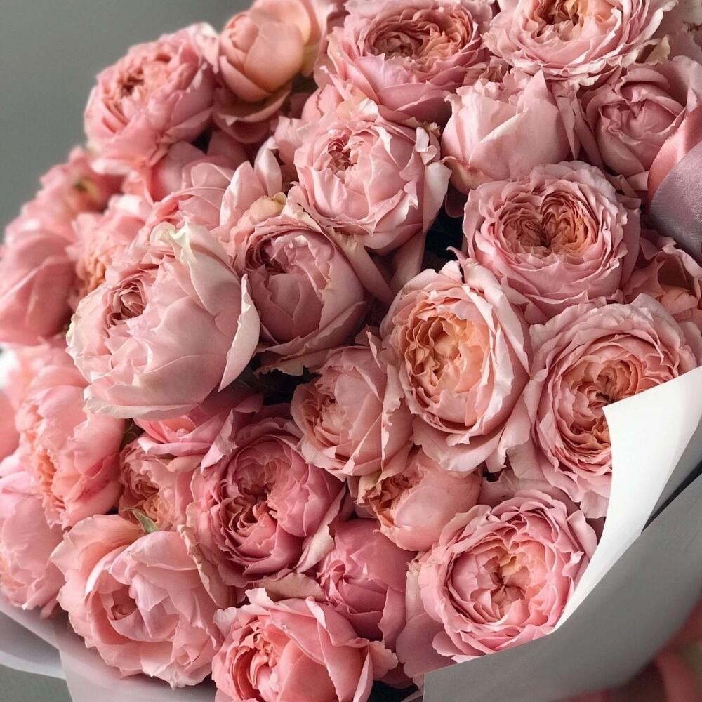 Коробка «Mama Mia» (Роза пионовидная кустовая и зелень)