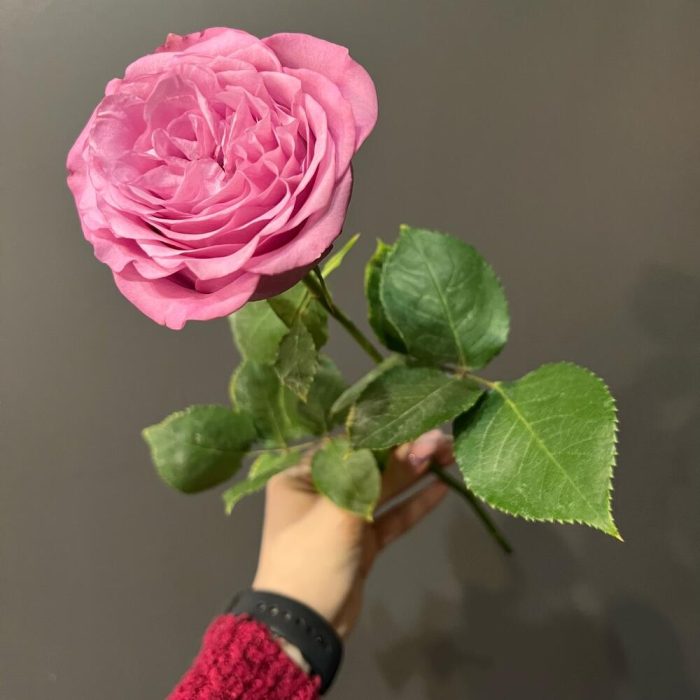 Пышная пионовидная роза отличается объемным бутоном, который как будто состоит из нескольких сотен лепестковПри раскрытии лепестки выкладываются как бы в три серединки. Цветок имеет выразительный лавандовый цвет с вкраплениями фиолетовых и сиреневых оттенков.
