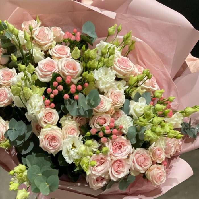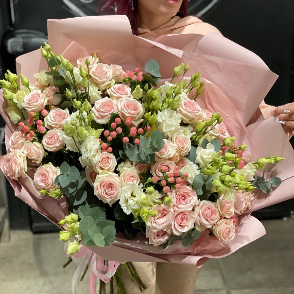 Альстромерии, Кустовые розы, Лизиантусы, Пионовидные розы, Розы, Ромашки