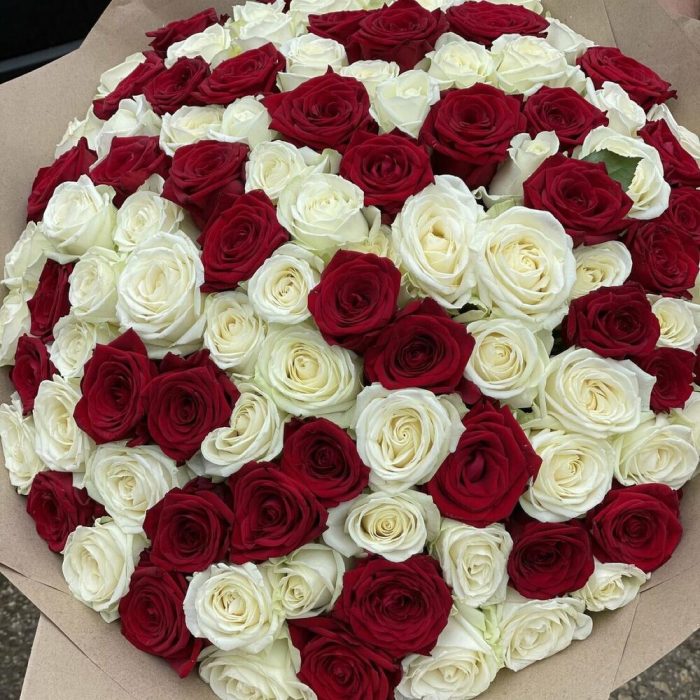 розы эквадор (60 см) – 71 шт.Крафт упаковка – 3 шт.Лента – 1 шт.