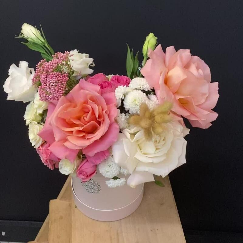 Альстромерии, Гвоздики, Кустовые розы, Лизиантусы, Розы, Хризантемы