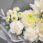Рускус – 2 шт.Хризантема кустовая – 1 шт.Ромашка – 1 шт.Хризантема – 1 шт.Гвоздика – 3 шт.Упаковка дизайнерская – 1 шт.Французская роза – 2 шт.