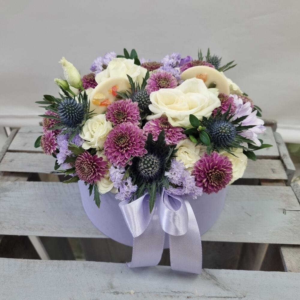 Нежная композиция в коробке с шоколадными медиантами ручной работы