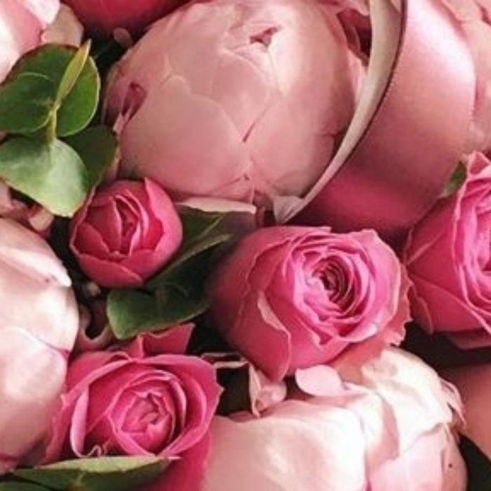 Пион – 5 шт.Роза кустовая – 7 шт.Упаковка – 1 шт.
