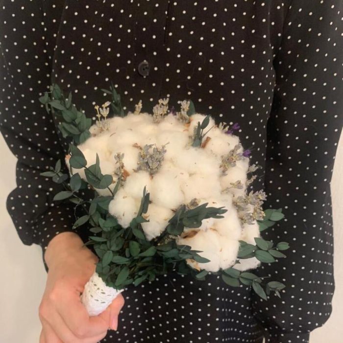 Букет невесты из хлопка и лаванды