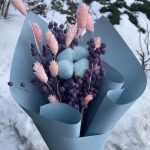 «Лавандовое созвездие» Букет из розы, гвоздики, статица и хлопка