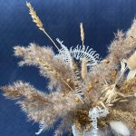 Кашпо керамическое – 1 шт.Оазис флористический – 1 шт.Лагурус – 5 шт.кортадерия – 7 шт.лен сухоцвет – 1 шт.папоротник стабилизированный – 3 шт.Эвкалипт стабилизированный – 3 шт.Колосья – 3 шт.солидаго сухоцвет – 9 шт.