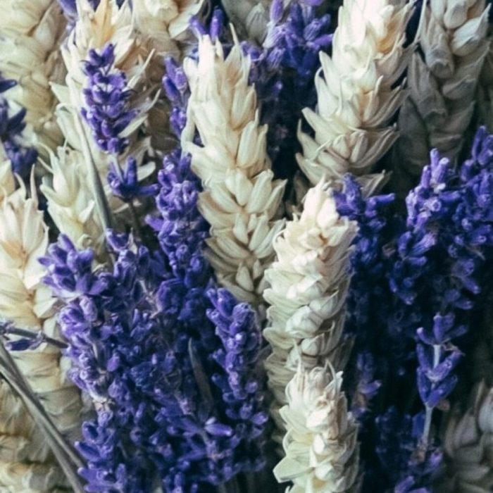 Лаванда (сухоцвет) – 85 шт.Лента – 1 шт.Пшеница (сухоцвет) – 15 шт.