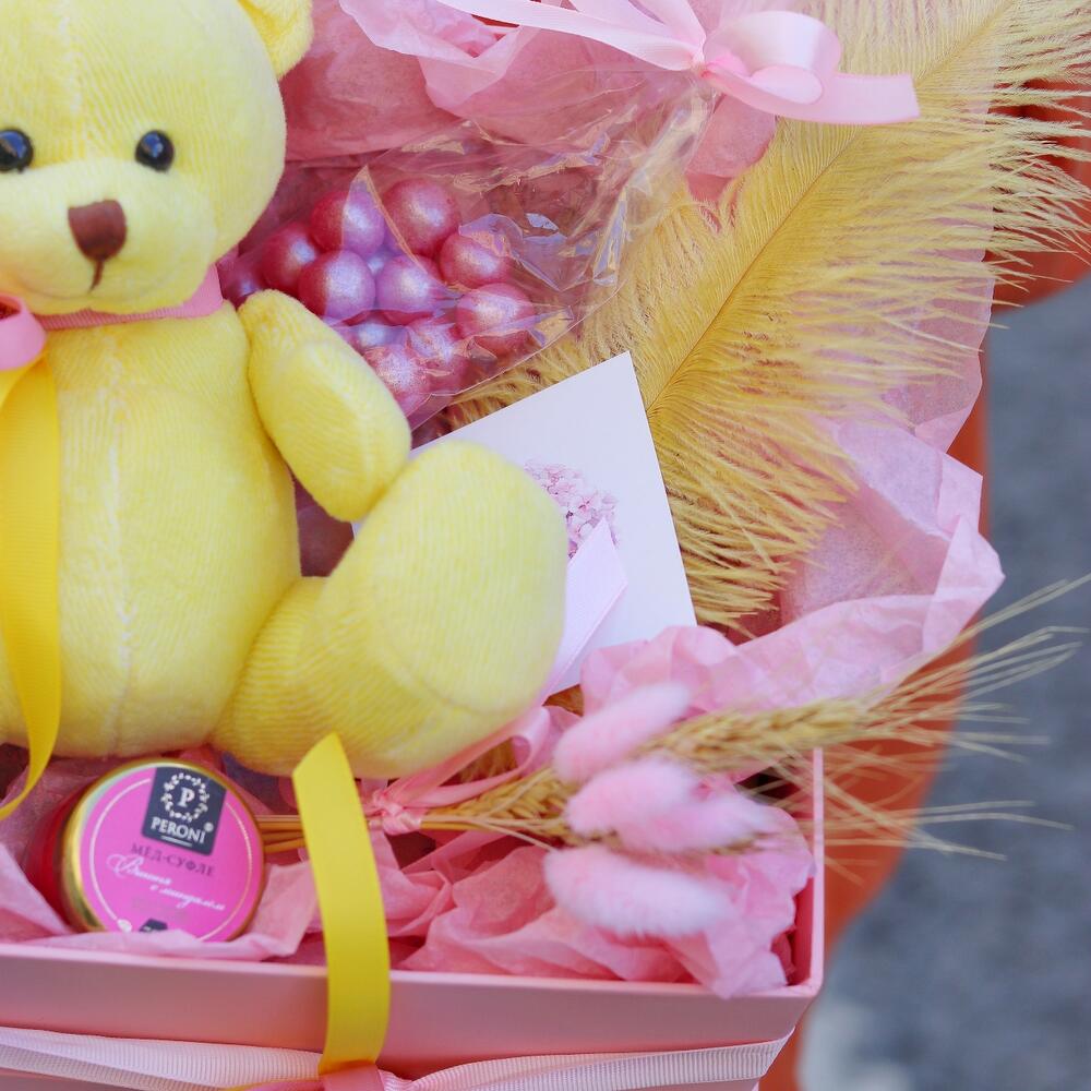 Нежный подарочный набор, который подойдёт для любого повода очень чутким и эмоциональным натурам.В состав набора входит стильная игрушка-мишка, мёд-суфле, свеча ручной работы, букет из сухоцветов и подарочная открытка.Подарите незабываемые впечатления Вашим близким … Показать ещёс чудесным подарочным набором❤️