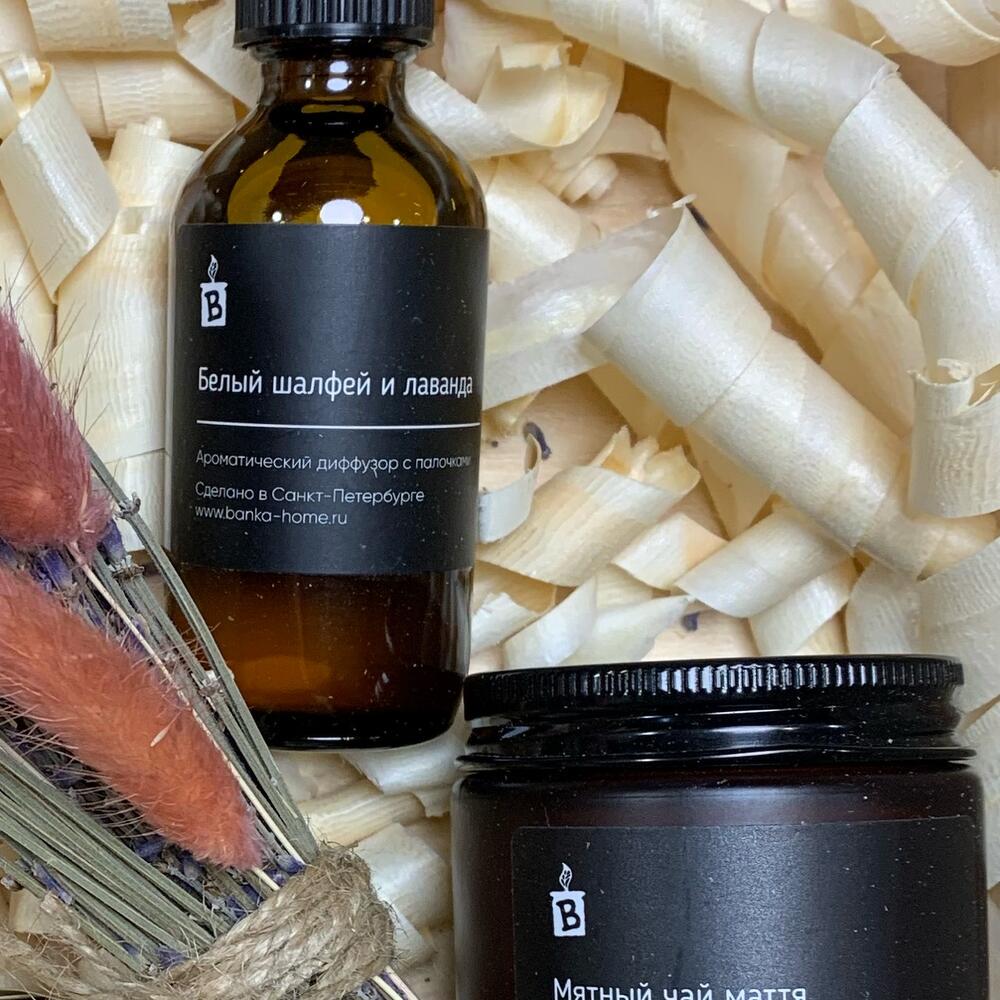 Ящик деревянный – 1 шт.Ваза стекло – 1 шт.букет сухоцветов (лаванда и лагурус1 шт.) – 1 шт.конфеты счастье 50г – 2 шт.свеча banca home в ассортименте – 1 шт.диффузор banca home – 1 шт.