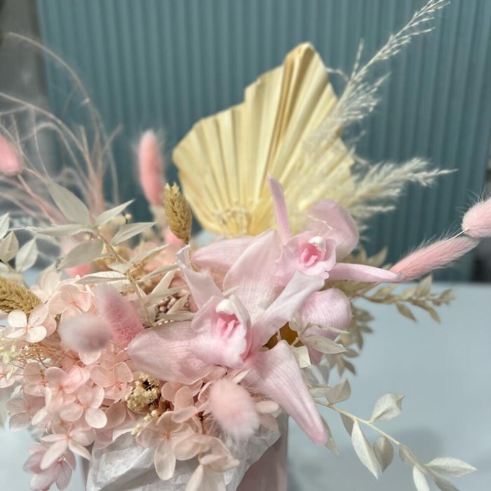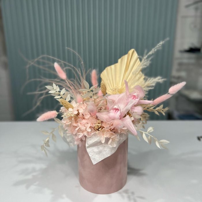 Букет из сухоцветов в фигурном кашпо «Мамино счастье»