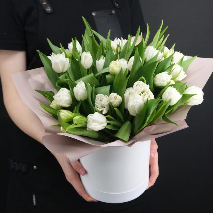 Шляпная коробка – 1 шт.Тюльпан пионовидный – 31 шт.подкормка для срезанных цветов – 1 шт.упаковка (аквапак) – 1 шт.